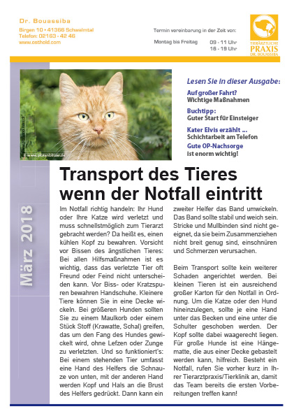 - Transport des Tieres wenn der Notfall eintritt